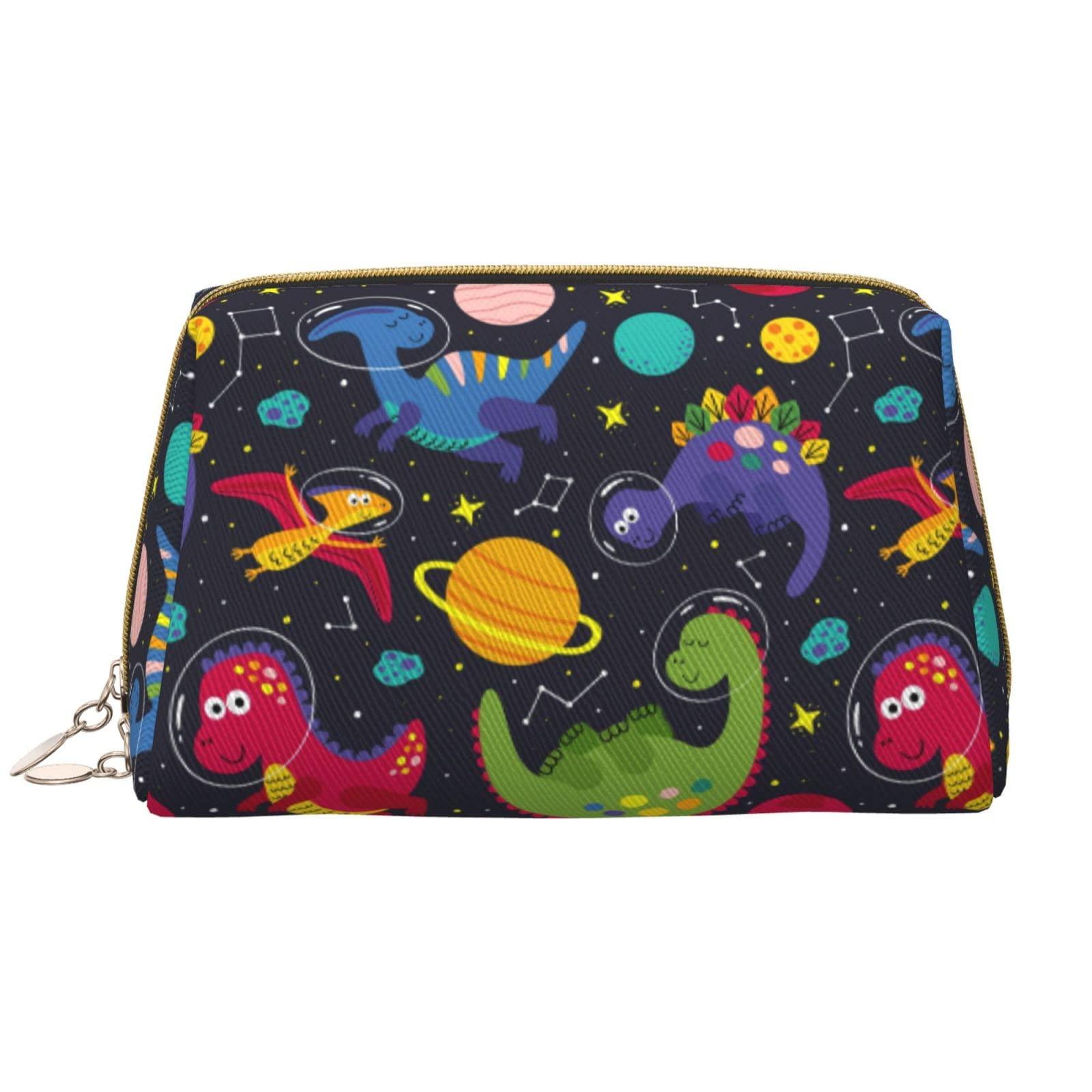 Cute Space Dinosaur Planets Black Makeup Zipper Pouch