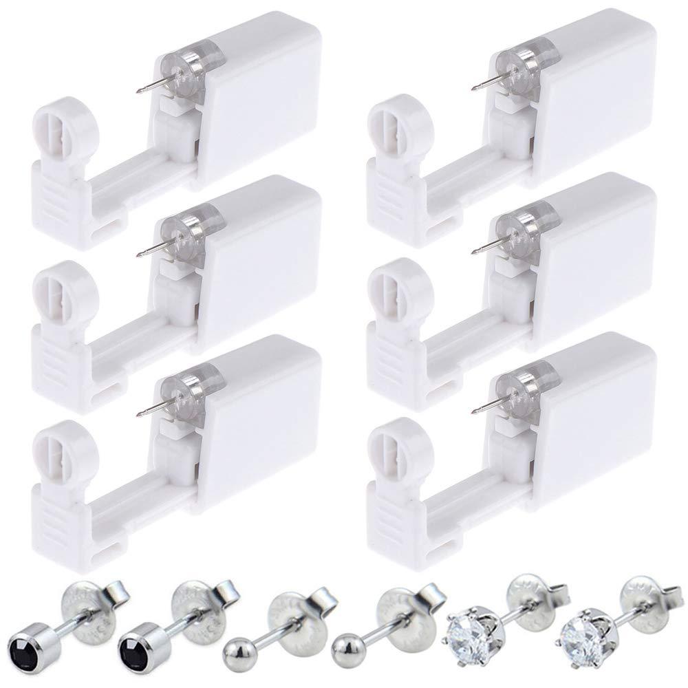 - [SUPER VALUE PACKAGE] - Super value pack of 18pcs ear piercing gun kit. This disposable ear piercing kit includes 6pcs self piercing gun + 6pcs built-in earrings studs + 6pcs clean tools. Each unit includes a ear piercing gun with a built-in ear stud.