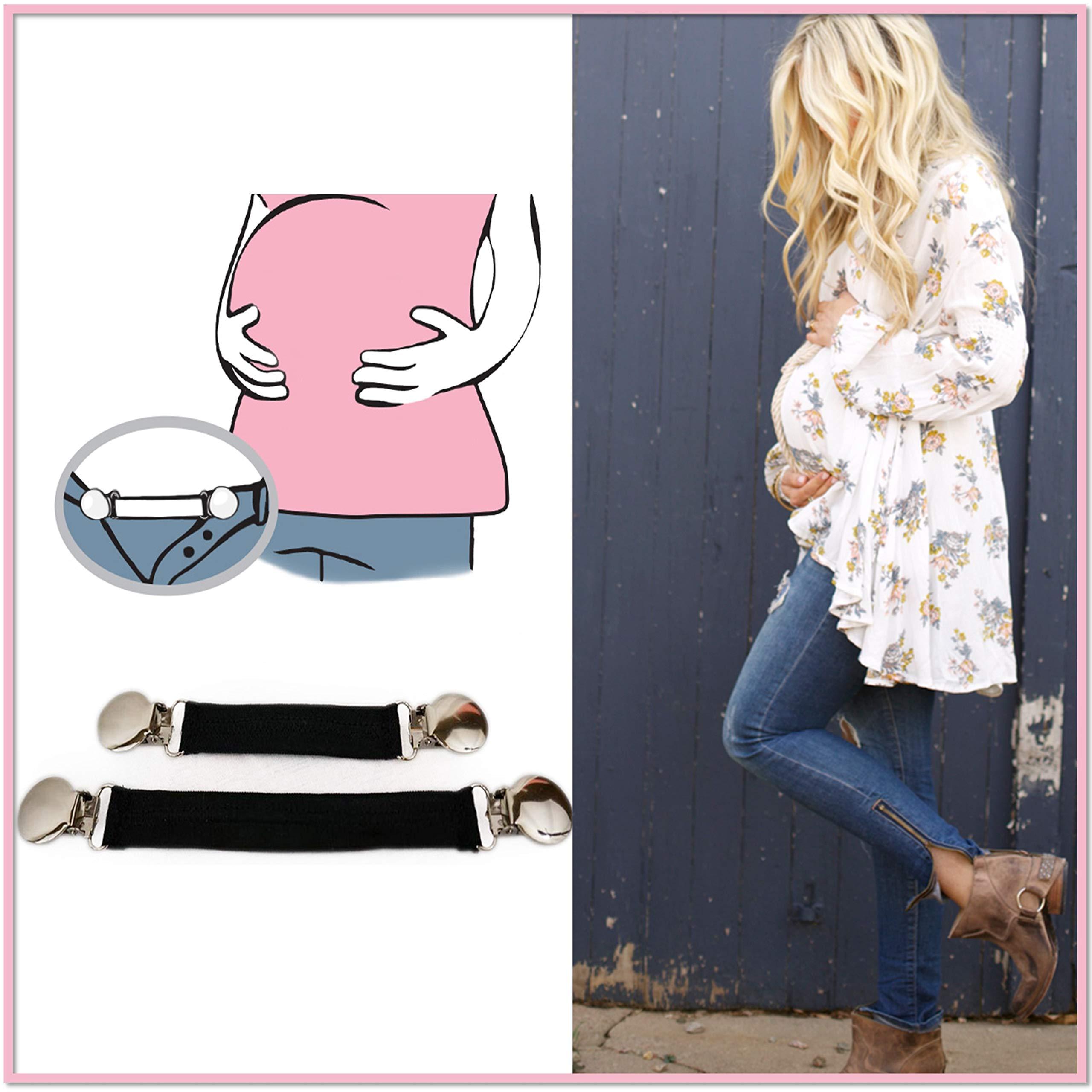 • Stretchable elastic clips allow your pants to grow with your belly!