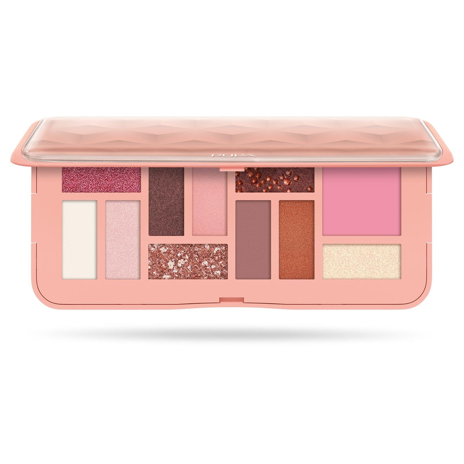 Presenting a sophisticated blend of vibrant colors from Pupa Milano's Make-Up Palette M. An all-in-one eye makeup and blush palette, this product is designed to give you a range of looks from bold to subtle. With 10 eyeshadow hues and a single blush shade, this palette is a must-have for every beauty enthusiast. Each shade is richly pigmented and blendable, allowing for seamless transitions and stunning eye makeup looks. Whether you prefer a matte eyeshadow finish or a shimmer eyeshadow, this palette has you covered. The metallic eyeshadow shades in the palette allow for a touch of drama and a dash of glamour to your look. The blush powder has a velvety texture, making it easy to apply. It effortlessly blends into your skin, giving you a natural, healthy glow. All shades in this makeup palette are talc-free, ensuring a smooth application without chalky residue. The matte, shimmer, and metallic finishes provide variety and creativity for your makeup routine. Moreover, the palette is incredibly easy to use the eyeshadows and blush are highly blendable, delivering a smooth, even finish. Made in Italy, this palette embodies the exquisite quality and craftsmanship that Pupa Milano is renowned for. The packaging is sleek and compact, making it perfect for on-the-go touch-ups. The Make-Up Palette M by Pupa Milano is a versatile, high-quality makeup palette that offers a wide range of eyeshadow and blush shades. Whether you're creating a subtle daytime look or a dramatic evening look, this palette has everything you need to enhance your natural beauty.