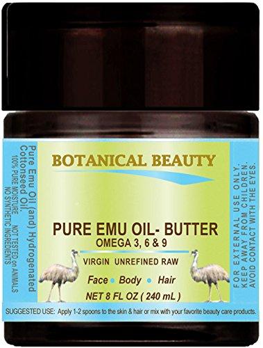 - Botanical Beauty PURE EMU OIL BUTTER One of the best raw butter to rejuvenate and regenerate skin tissues. PURE EMU OIL BUTTER is rich in essential fatty acids, a combination of omega 3, omega 6 and omega 9, vitamin A, vitamin E ideal light moisturizer for everyday use.