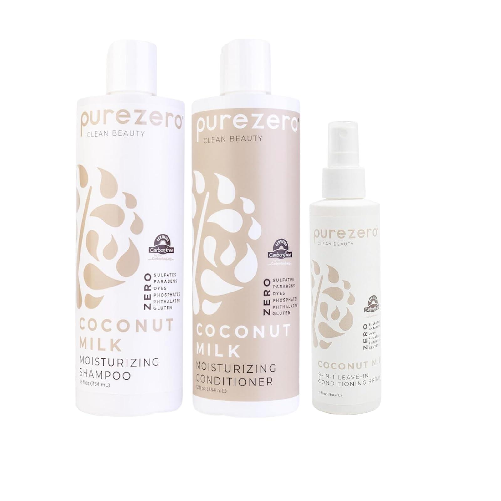 Indulge your hair with the nourishing power of our PureZero Coconut Milk Bundle, featuring our luxurious Coconut Milk Shampoo, Conditioner, and the versatile Coconut Milk 9-in-1 Conditioner. Coconut Milk Shampoo: Experience a gentle cleanse that leaves your hair feeling fresh and revitalized. Infused with the hydrating properties of coconut milk, this sulfate-free formula removes impurities without stripping your hair of its natural moisture. Say goodbye to dryness and hello to silky, soft strands. Coconut Milk Conditioner: Follow up with our rich Coconut Milk Conditioner, designed to deeply hydrate and detangle your hair. This lightweight formula works to enhance shine and improve manageability, making every day a good hair day. Enjoy the delightful tropical fragrance as it envelops your senses. Coconut Milk 9-in-1 Conditioner: Elevate your hair care routine with our innovative 9-in-1 Conditioner. This multi-tasking powerhouse offers benefits such as deep conditioning, heat protection, and frizz control. Perfect for all hair types, it delivers a boost of hydration while protecting against damage, leaving your locks looking healthy and vibrant. Together, this bundle provides a complete hair care solution, ensuring your hair is nourished, hydrated, and ready to shine. Treat yourself to the ultimate coconut experience and embrace beautiful, healthy hair every day!