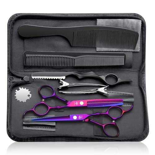 - [Premium Stainless Steel] Our professional hair cutting scissors kit with cutting scissors and thinning shears are made of premium Japan stainless steel with sharp and smooth blade, these hair cutting scissors will not damage or split hair ends. Our haircut shears are covered with beautiful color and anti-rust coating that makes the scissors more long-lasting, ensuring a perfect cutting every time.