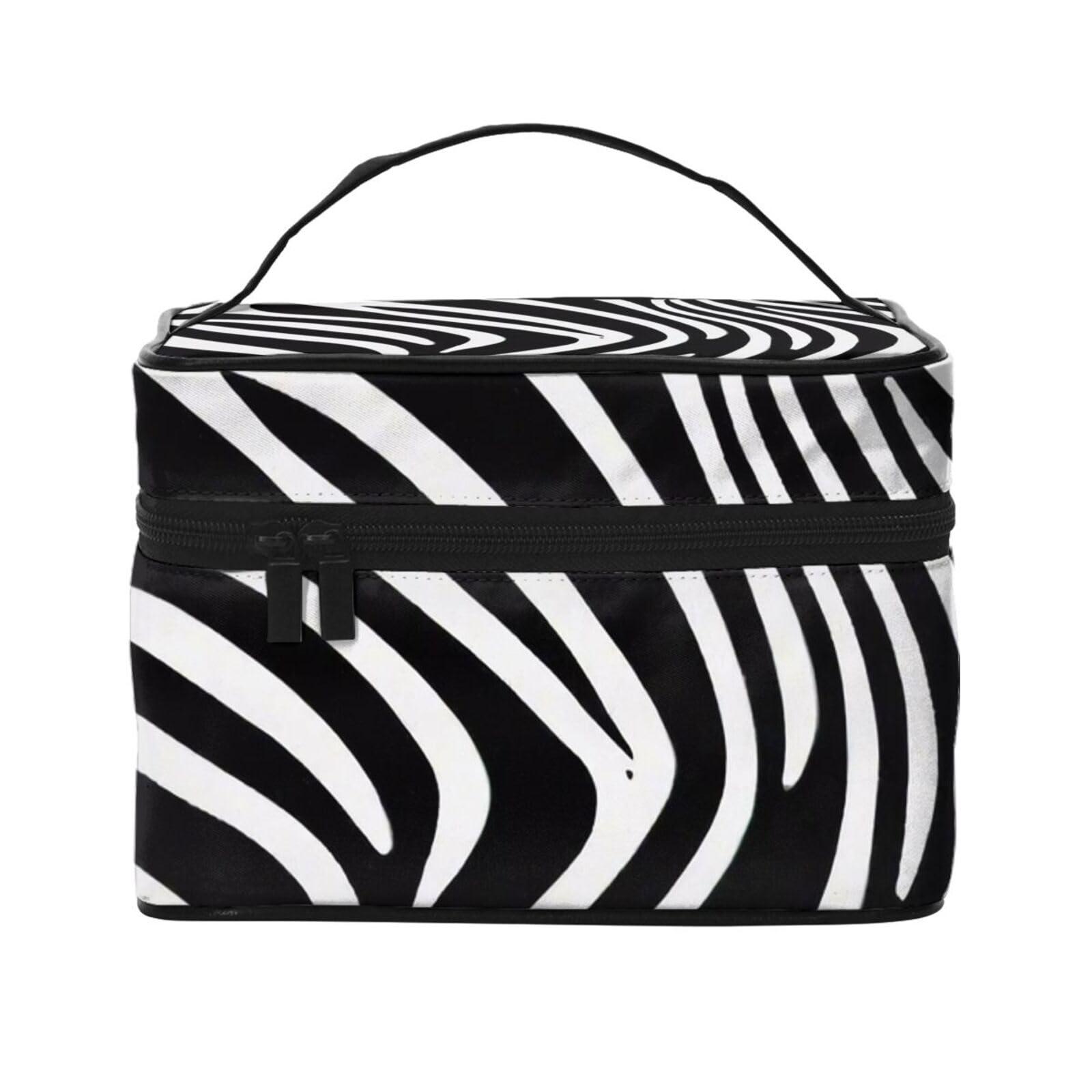 QASDFGHR Small Striking Zebra Print Makeup Bag,Travel Cosmetic Bag with Zipper for Women Square Make Up Bags Organizer