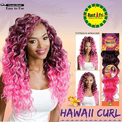 - RastAfri Hawaii Curl Crochet Braiding Hair Extensions | This beautiful Beach curl is made with a soft resilient fiber embraced with a tapered finish and falls 19 inches in length. Hawaii Curl creates a voluminous chic protective style. | Shown in color T1B/PINK