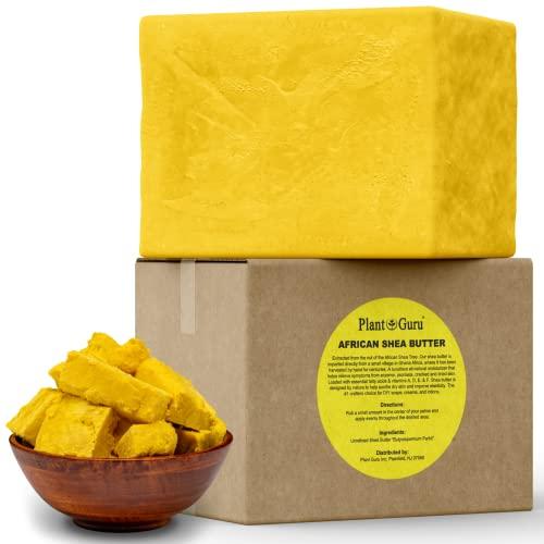 Plant Guru Raw African Shea Butter 5 lbs. Bulk Block 100% Pure Natural Unrefined YELLOW - Ideal Moisturizer For Dry Skin, Body, Face And Hair Growth. Great For DIY Soap and Lip Balm Making.