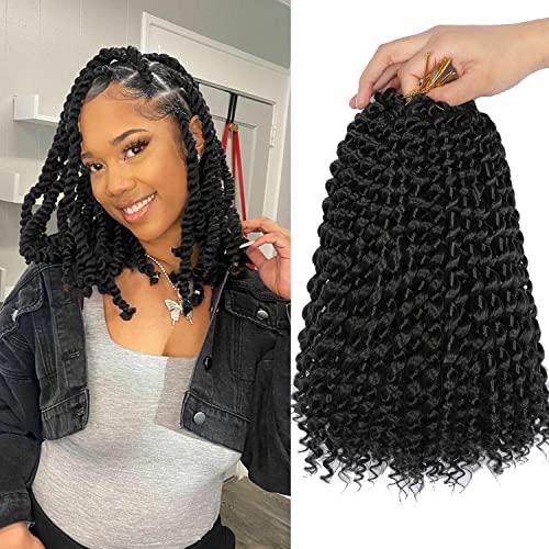 Re4U Hair Short Passion Twist 12 Inch, 6 Packs Water Wave Crochet For Black Women, Soft Twists Braiding Butterfly Locs Braids, Bohemian Curly Extensions (1B#,6 Packs)