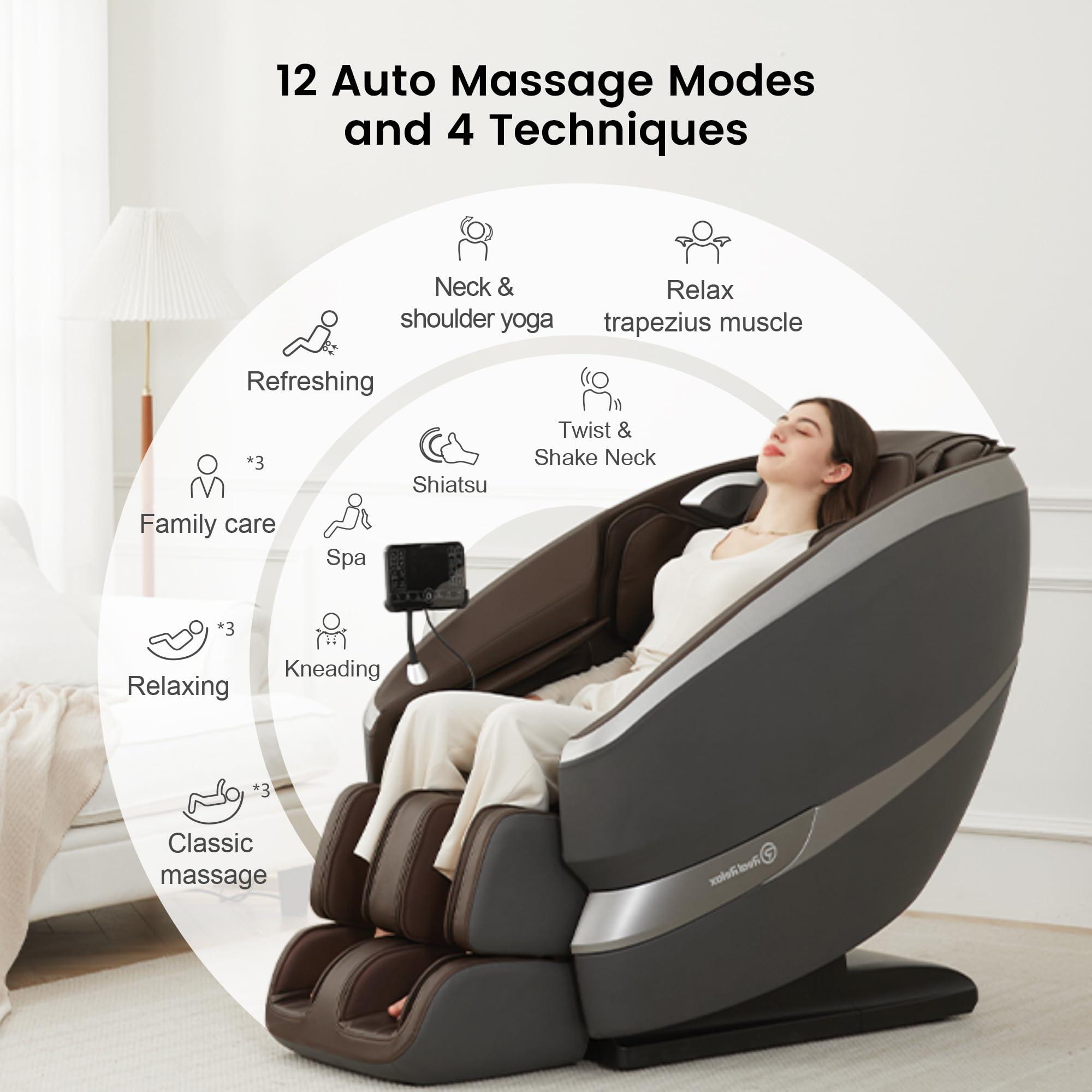 - DUAL CORE S-TRACK - Equipped with Dual core S track system, provides massage coverage from neck to hips, comprehensively encompassing your key comfort zones. With 4 types of massage techniques, 12 automatic massage programs and 5 massage intensity, it simulates the techniques of professional masseurs to deeply relieve daily accumulated fatigue