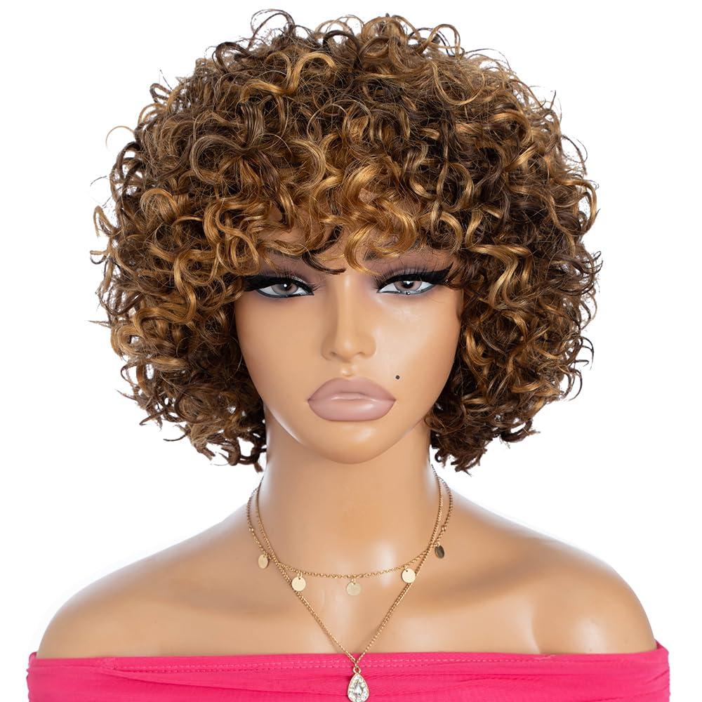 - Colored Curly Wig with Bangs: 8" short curly wigs, timeless classic style, cute pretty curls, multi-colors for choice, you'll get a lot of compliments wearing this wig