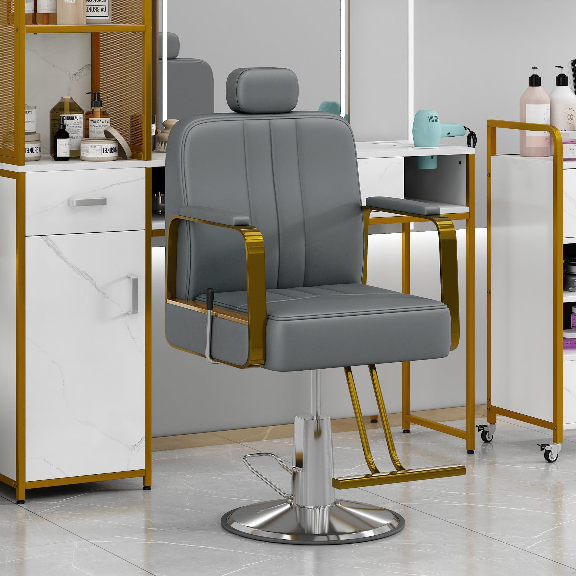 - FLEXIBLE ADJUSTMENT: Classic modern barber chairs can swivel 360, 160 reclining backrest & adjustable headrest , Pump can Lifting Height 4.3 inches, Seat Size: 20.4 x 17.7 x 5.1 in.