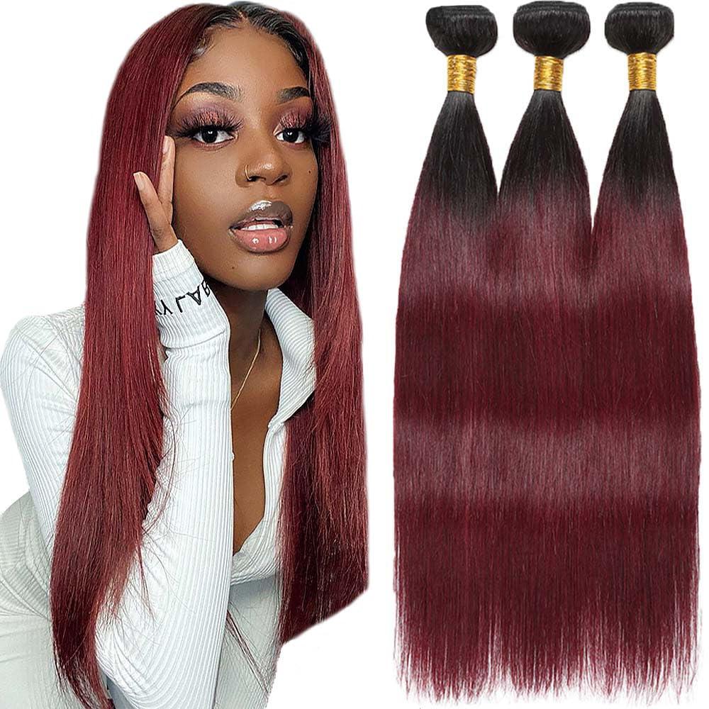 - Hair Color:1B99J Two Tone Black And Burgundy Ombre Straight Hair Bundles