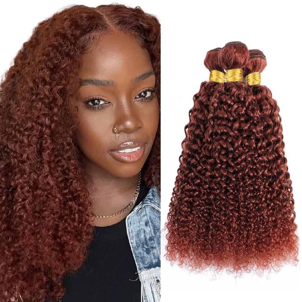 - Reddish Brown Curly Wave Bundles Color: Color 33 Bundles, Reddish Brown Bundles Human Hair, Shiny And Beautiful
