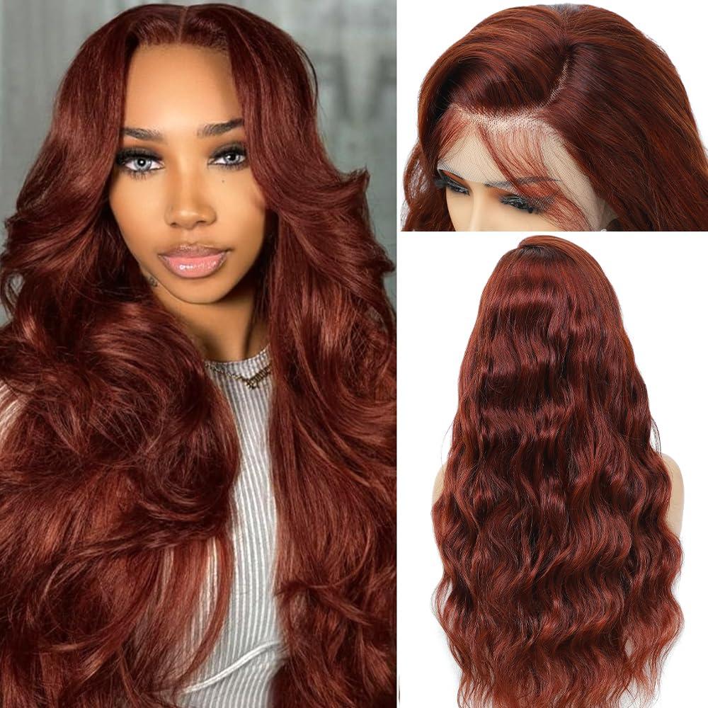 - Auburn brown body wave lace front wigs human hair: medium cap size(22.5 inch), 4 combs with adjustable straps easy to adjust, wear comfortable.