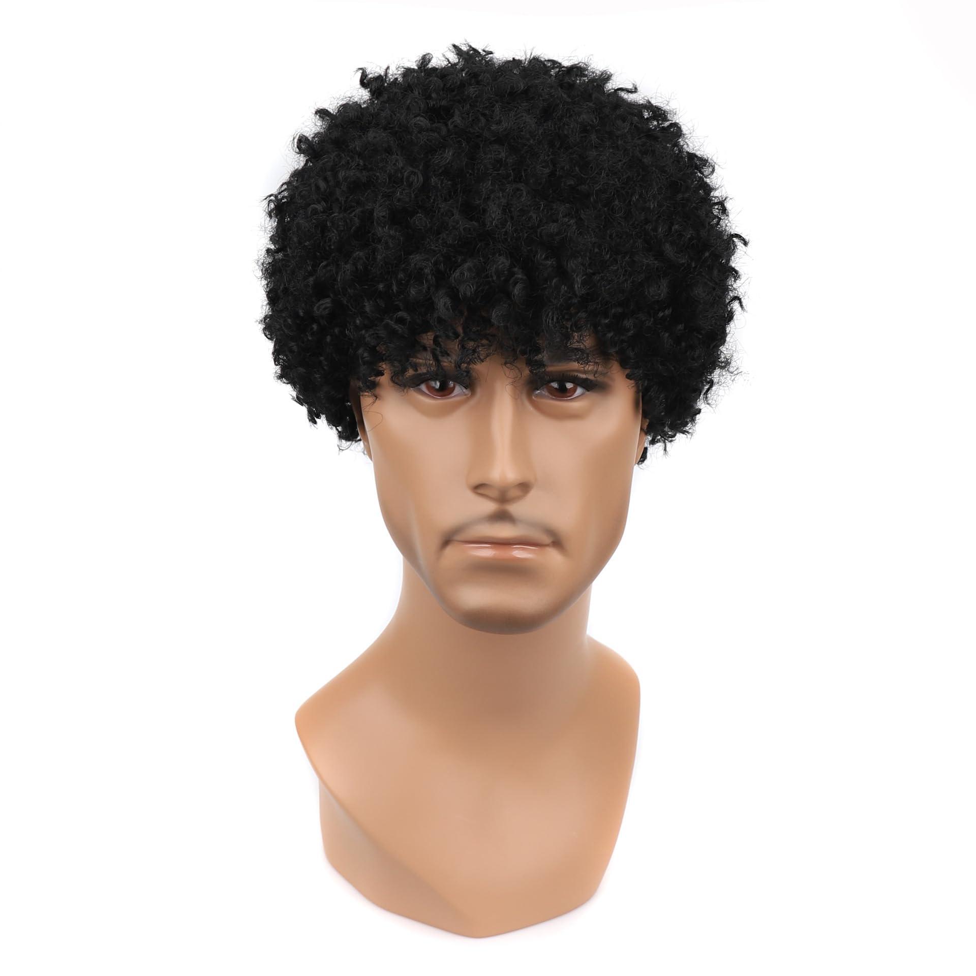 Remanbo 2inch Short Curly for Men Wigs Fashion Machine Made Natural Black Hair for Hair Loss (Black)
