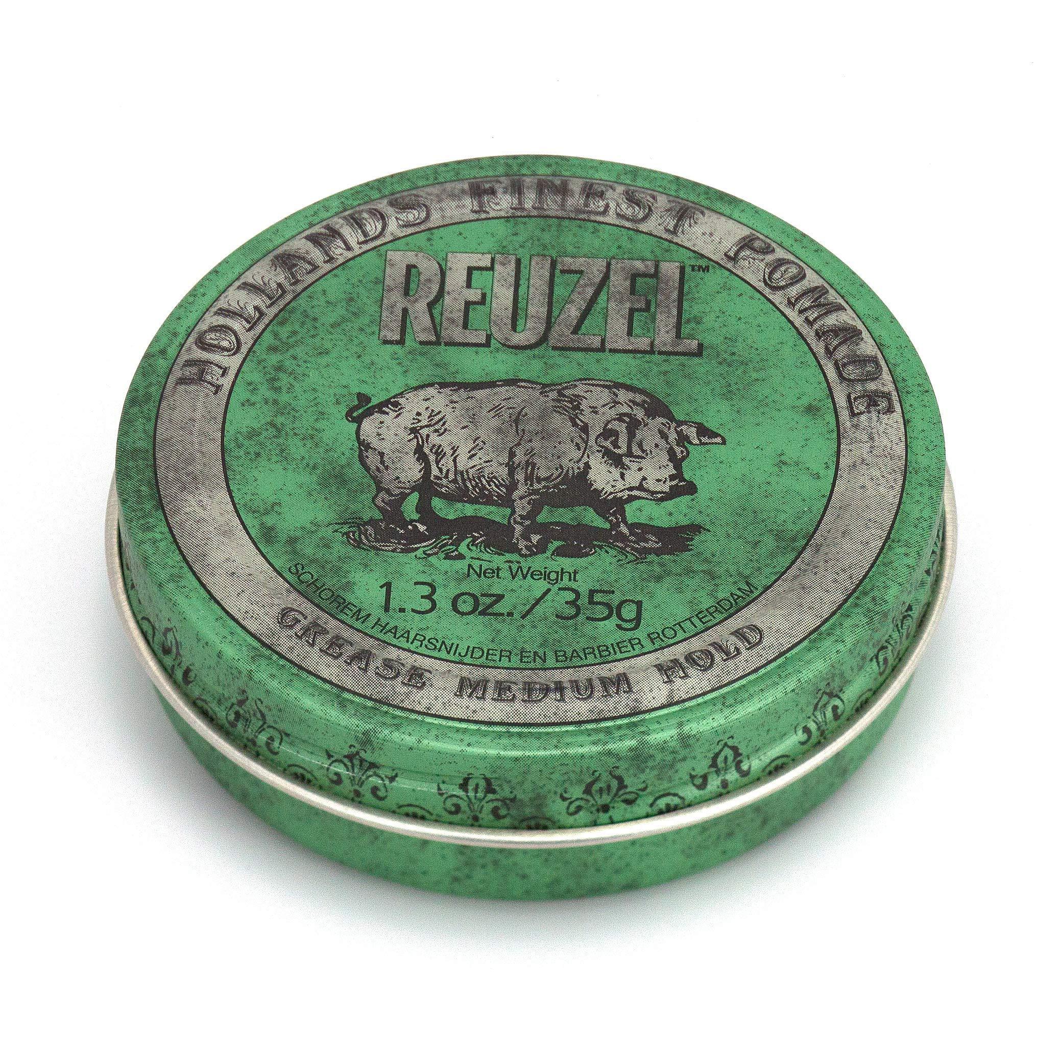 REUZEL Grease Hold Hair Styling Pomade Piglet Wax/Gel, Medium, Green, 1.3 oz, 35g
