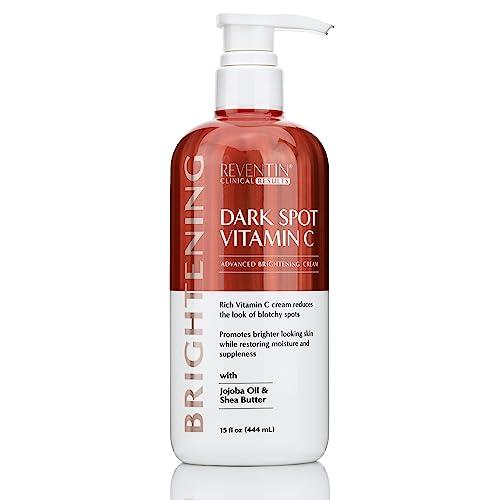 - RADIANT SKIN This Reventin Vitamin C Body Cream helps refine the look of aging skin and uneven skin tone. Vitamin C helps promote an even skin tone, while also helping stimulate collection production to help improve skin elasticity + firmness. Advanced Brightening Vitamin C Body Cream & Face Lotion helps refine the look of discolored skin, age spots, freckles, sun damage from sunspots, rough skin texture, hyperpigmentation, & acne-scars.