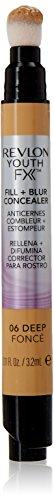 Revlon Youth FX Fill + Blur Concealer works to fill in and blur lines and wrinkles with micro-fillers and optical diffusers. It erases the appearance of dark circles with color correcting pigments that brighten the skin around the eyes and dramatically transform the appearance of crows feet. The lightweight, hydrating formula looks freshly applied all day and doesnt settle into lines. Working in harmony with primers and foundation, this full coverage concealer is available in six unique shades.