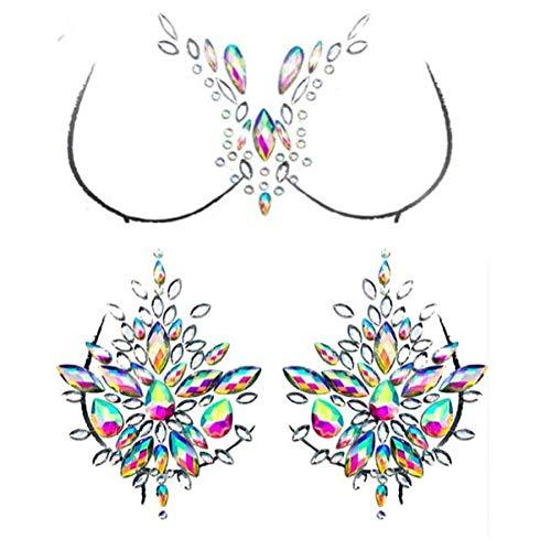 - Gorgeous Glimmering Festival Body Jewels - 1 set unique handcrafted rhinestone chest gems tattoo sticker and 1 set breast body gems pasties. Complete your festival outfit off with these amazing gems! Use these crystal holographic face body jewels along with glitter to accent your beautiful makeup