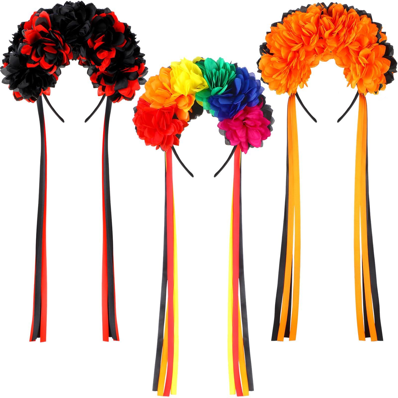 - Exquisite Floral Design: our flower headbands for women feature an eye pleasing floral design that catches the essence of the traditional Mexican holiday, the vibrant rainbow, orange, red and black colors create a visually striking accessory that is to turn heads