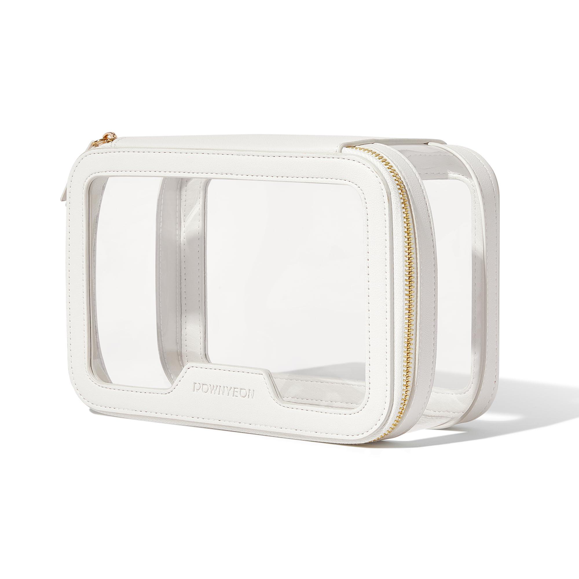 - CLEAR VISUAL DESIGN Our travel makeup bag has a unique transparent design - it's clear on all sides. Save time searching for what you need by seeing exactly what's inside without having to open the package.