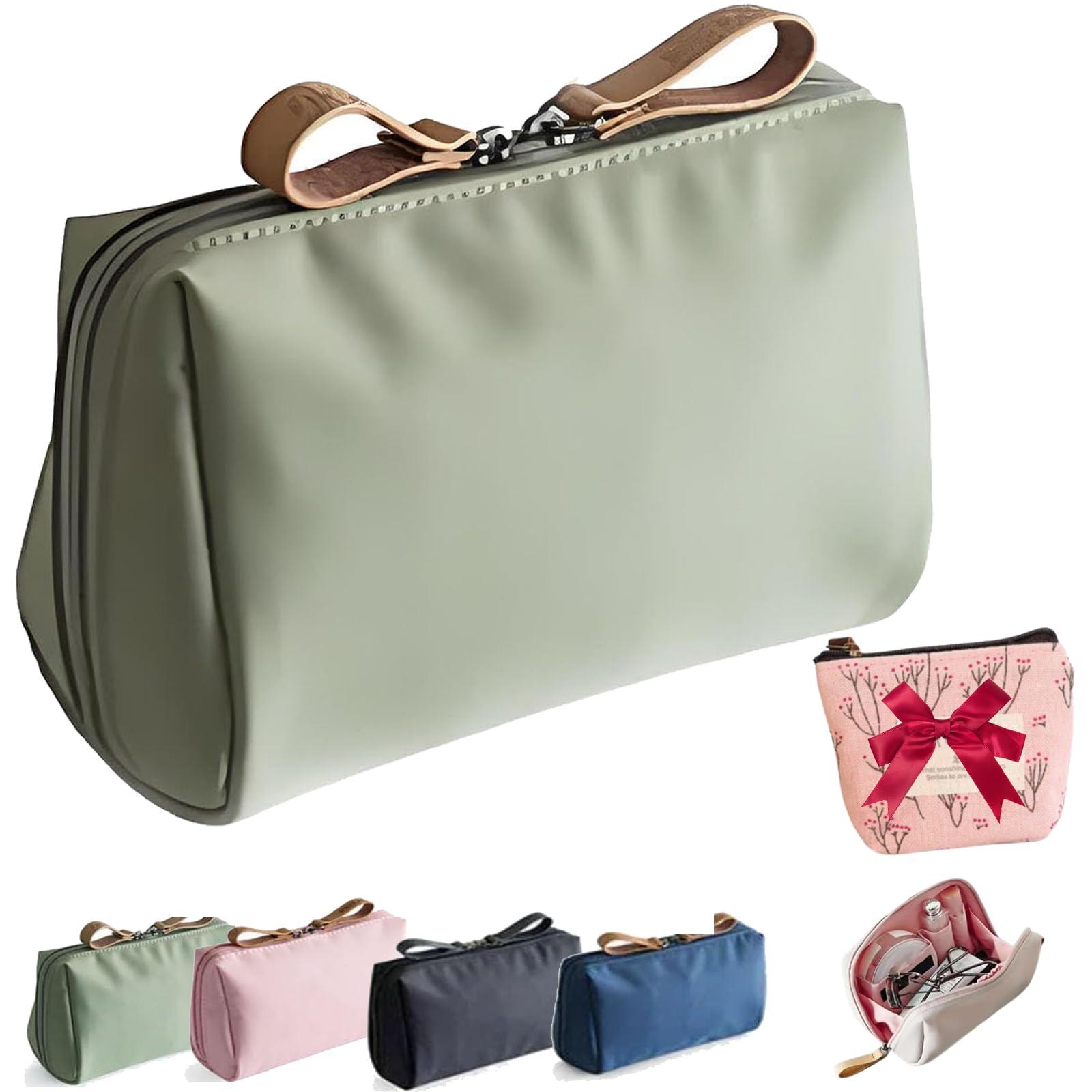 - Large Capacity & Versatile Storage: This travel makeup pouch for women can easily accommodate all your toiletries, cosmetics, and tools such as lipsticks, lotions, eyebrow pens, eyeshadows, creams, and even mens shaving kits. Multi compartment toiletry cosmetic bag includes 4 elastic inner pockets for organized storage and easy access.