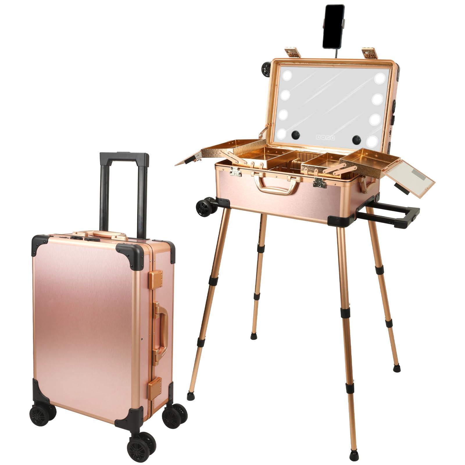 - SPEAKER- equipped with 2 built-in speakers, you can link to your mobile phone music app to work fashion, sound quality, strong appeal, give you a different kind of enjoyment. PREMIUM QUALITY & LOOK- sturdy aluminum frame, reinforced corner, MDF exterior and PU interior make this makeup case last for years; widely used in fashion runway as temporary makeup station and beauty travel luggage. Great for salon use, shopping mall display, home and freelance makeup artists and dance competition need.