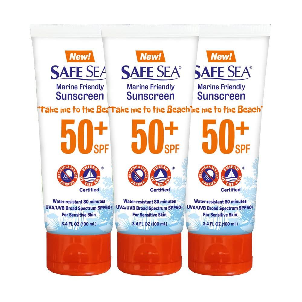 - JELLYFISH STING PROTECTION Bask in the sun and waves with SPF 50+ sunblock from Safe Sea. Your reef-safe sunscreen helps guard against jellyfish sting, sea lice, swimmers itch and UV radiation. Enjoy your beach day, protected.