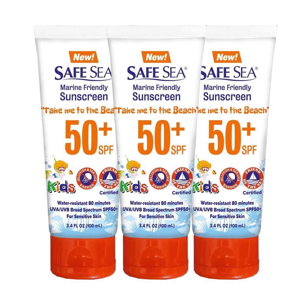 Safe sea SPF50+ 3.4 oz. tube sunscreen - Jellyfish and Sea lice protective lotion. Very Water Resistant, Sensitive skin and Reef-Safe Sunscreen. (3.4 oz. tube 3 pack)