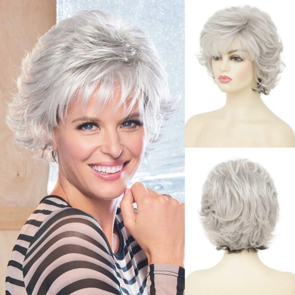 - Style: Natural gray wavy wigs with bangs look like your own hair, it is more suitable for daily wear or workplace wear.