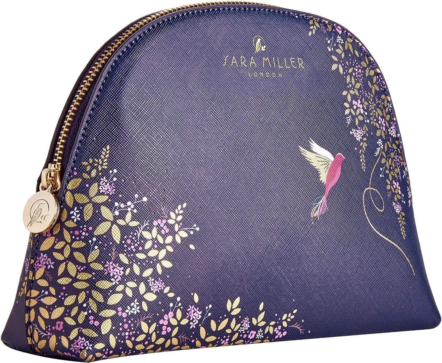 A Midnight blue medium cosmetic bag featuring opulent oriental flowers and humming birds, embellished with gold foil detailing.6.5(L) x 22.5(W) x 16.5(H) cm