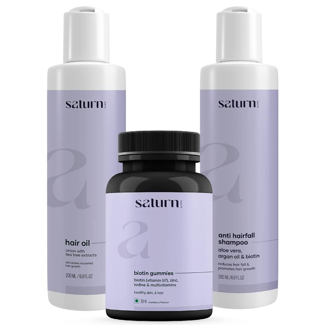 - Special Feature: This fast-growth hair oil is a blend of those special ingredients that can help you stop hair loss and encourage healthier hair growth. Saturn hair shampoo delivers the essential nutrients to your hair providing cohesion & strength. This shampoo get in-depth nourishment Enriched with hair-strengthening qualities of aloe vera, caffeine, argan oil & biotin gummies are Codfish Free, Gluten Free & Sulphites Free.