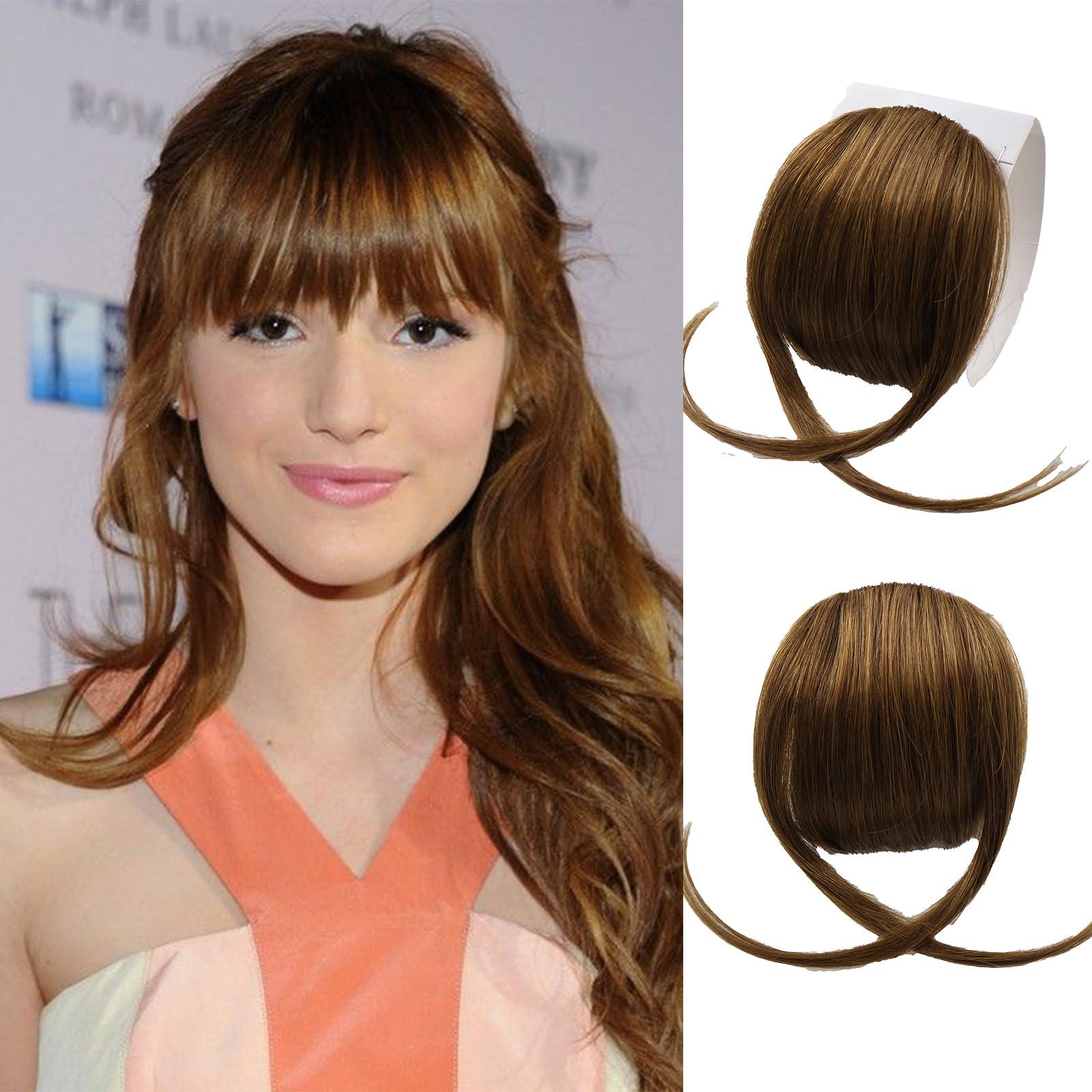 Savasana Clip on French Bangs-Real Human Hair Clip in Bangs Hairpieces Fake Air Bangs Fringe with Temples Bangs Hair Extensions(French Bangs, Medium Brown)