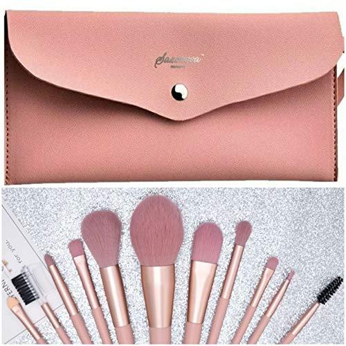 Sazonova Beauty 12 Pcs Vegan Cruelty Free Luxury Wood Handle Pink Make Up Brushes with PU Leather Bag (Pink)