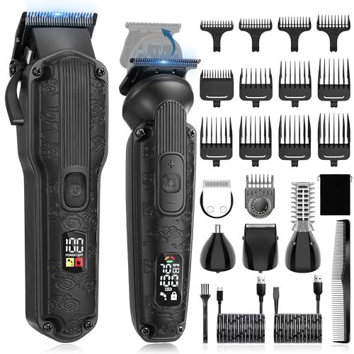 - Professional Hair Clipper & Trimmer Kit: This mens grooming kit features a powerful hair clipper and a hair trimmer for achieving all hair styles, its well fit for professional barbers and home use.All black metal body and exquisite auspicious cloud embossed design, creating a vintage mechanical aesthetic feeling,also its a good choice for your family on important occasions