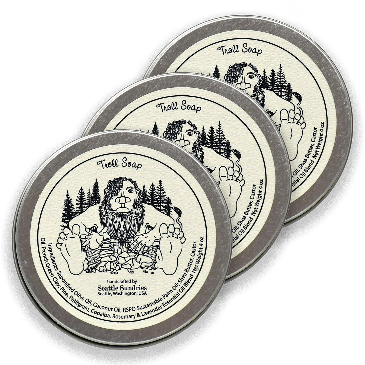 - Long-lasting 4 oz round bar soap, packaged in reusable, low waste tin. This natural vegan soap is great as a hand, face, beard, or foot wash and makes a great gift for men.