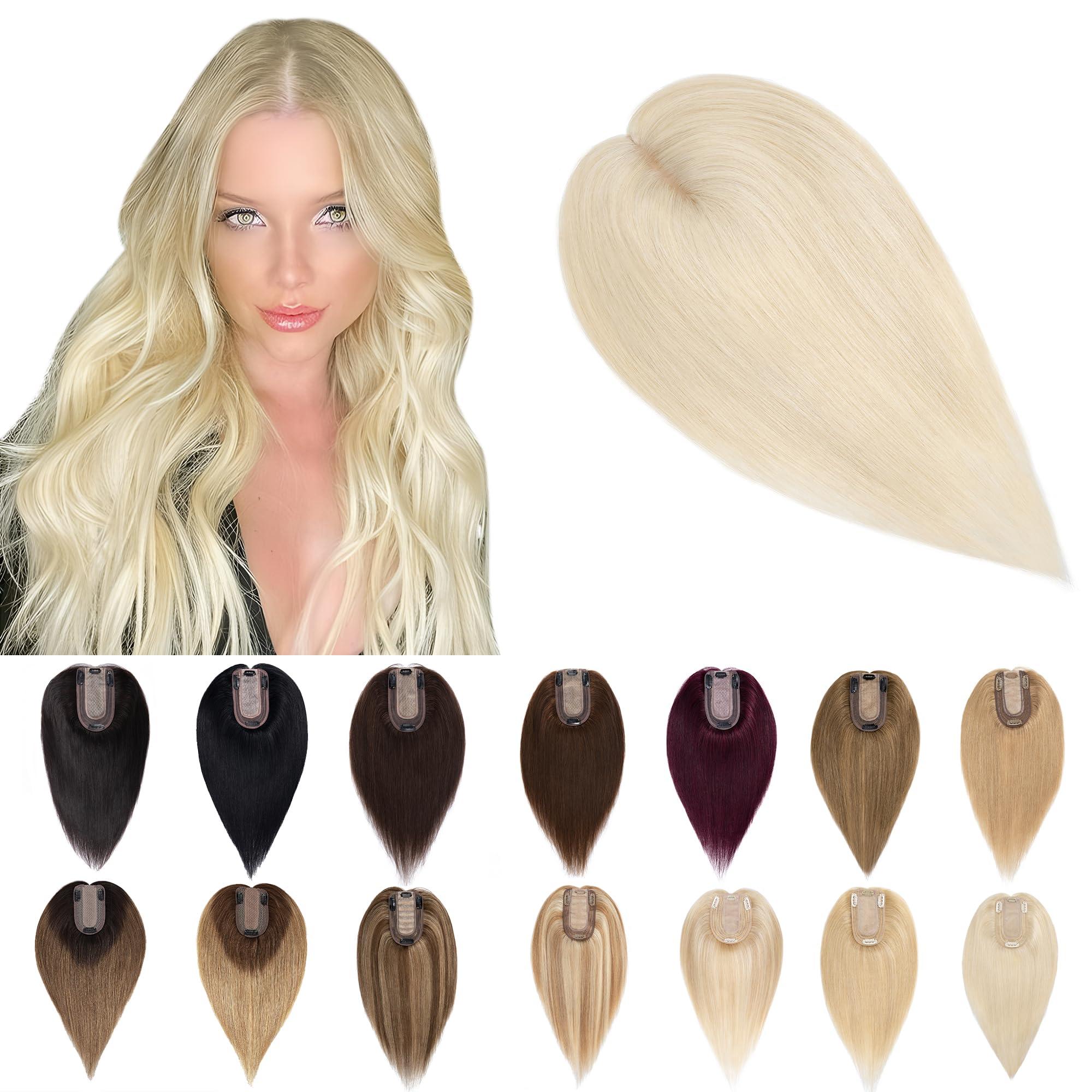 - 100% real human hair topper Shedding and tangle free, no synthetic mix, no animal fabric mix, can be washed, dyed, curled and straightened. (Avoid ironning the hair with high temperature-advise 100-120 degree)