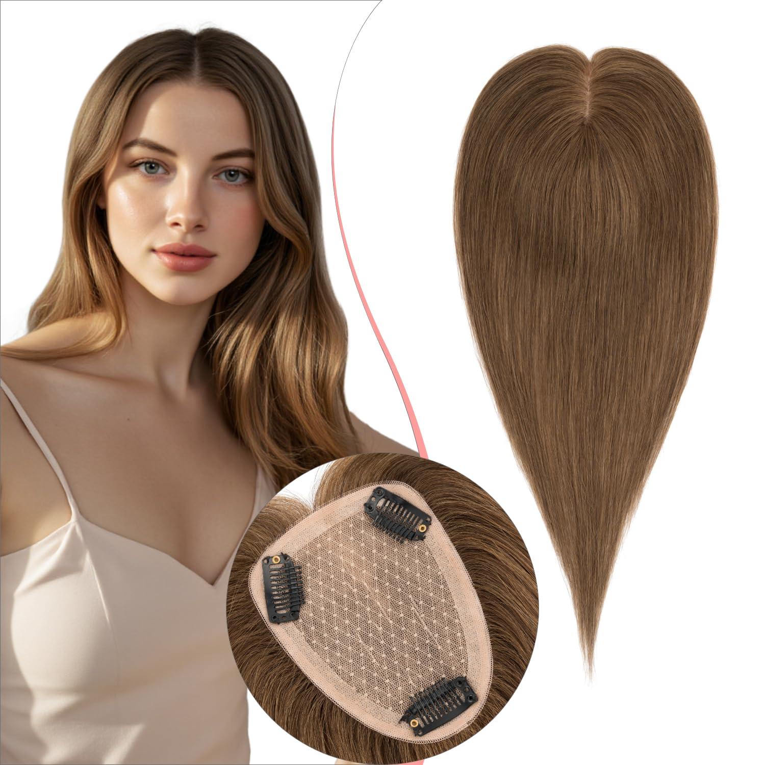 - Hair Topper Real Human Hair:Our human hair topper is very soft and healthy. It blends perfectly with your own hair, and you can use heat tools to style it just like you would your own hair.