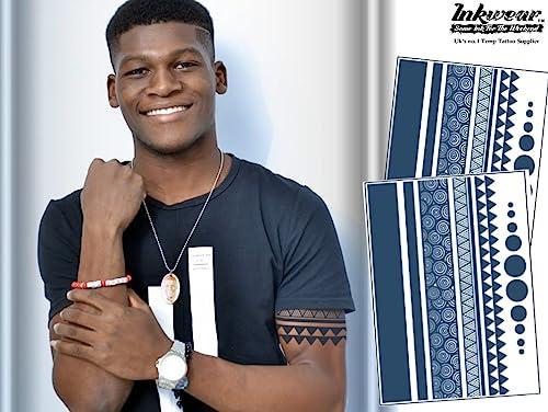 *BRAND New* Hardwear Semi-Permanent designer Tattoos, exclusively from the UK's no.1 fake tattoo supplier Contains x 2 A5 sheets featuring our arm band tattoos. Tattoos 7.9 inches long so can be joined together to make a band up to 23.7 inches. Just cut to the required size. Easy! Get a real looking fake tattoo, apply at home, NO commitment, perfect for religious or lifestyle constraints. A unique and thoughtful gift. Exfoliate the area, avoid lotions & hair if possible * Apply in 30 seconds with water * Develops darker blue over 1-3 days, BE PATIENT, it's coming! * Last 5-15 days * Skin safe, Waterproof, Hardwearing and SUPER Realistic * Inkwear TM exclusive designer tattoos, constant updates * Once fully set they look, feel and act COMPLETELY real * Fool your friends * Be Warned! Once applied is difficult to remove until 1 week * Use the bandage or long sleeves to protect transferring onto other skin through contact (day/s 1-3) * Moisturise after day 3 to protect and give them life. Semi-permanent inks turn the skin cuticle dark blue via a totally safe protein chromogenic reaction. They fade naturally with the skin's metabolism - this can be helped along with makeup remover. See 'Hardwear' product image for full Hardwear instructions Not suitable for sensitive skin, 5yrs old +, adult supervision, limited stock Hardwear uses medical grade non-allergic adhesives with Genipin Gardenia Herbal inks, a natural ingredient. All skin safe to CE standards. Hardwear is a natural vegan product. Hardwear is NOT Henna. Hardwear is a waterproof product. This pack contains Ingredients: Alcohol, Water/Eau/Aqua, Ethoxydiglycol, Genipa Plant Extract, Trehalose, 1,2-Hexanediol, Phenoxyethanol, Ethylhexylglycerin, Blue 1 (CI 42090)