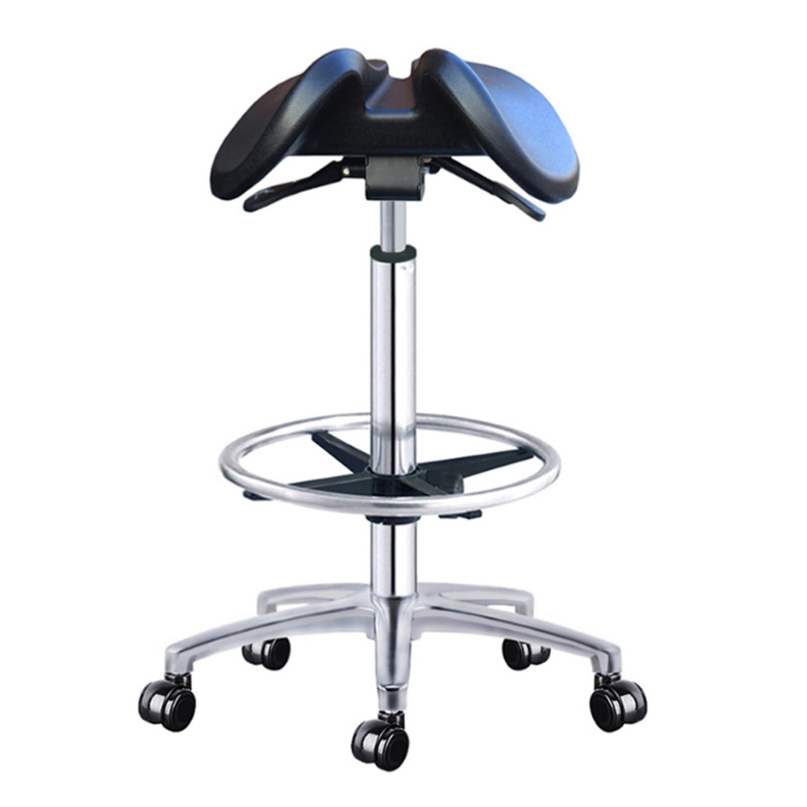 - [Different Height]The height of the saddle chair is adjusted by the hydraulic handle, to meet different height requirements under any circumstances.