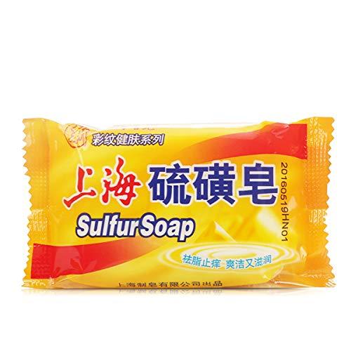 Shanghai sulfur soap () can provide relief for mild skin itch, help with athlete's foot, also use occasionally as a shampoo for those get little bumps and patches of rash skin on scalp from time to time, and can be used for pups with seborrheic dermatitis or other itchy skin conditions, nothing better than these sulfur acne soap bars to stop the itching.