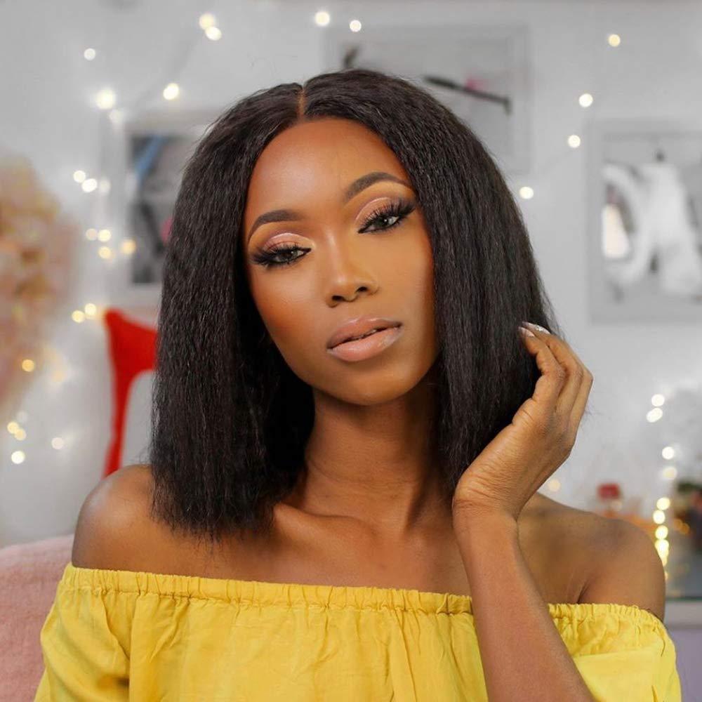 Prime Kitty Short Lace Front Wigs Human Hair Pre Plucked Bleached Knots Kinky Straight Short Wigs for Black Women with Baby Hair Medium Cap Fake Scalp Natural Black 13x4 Human Hair Lace Frontal Wig 180% 8\"