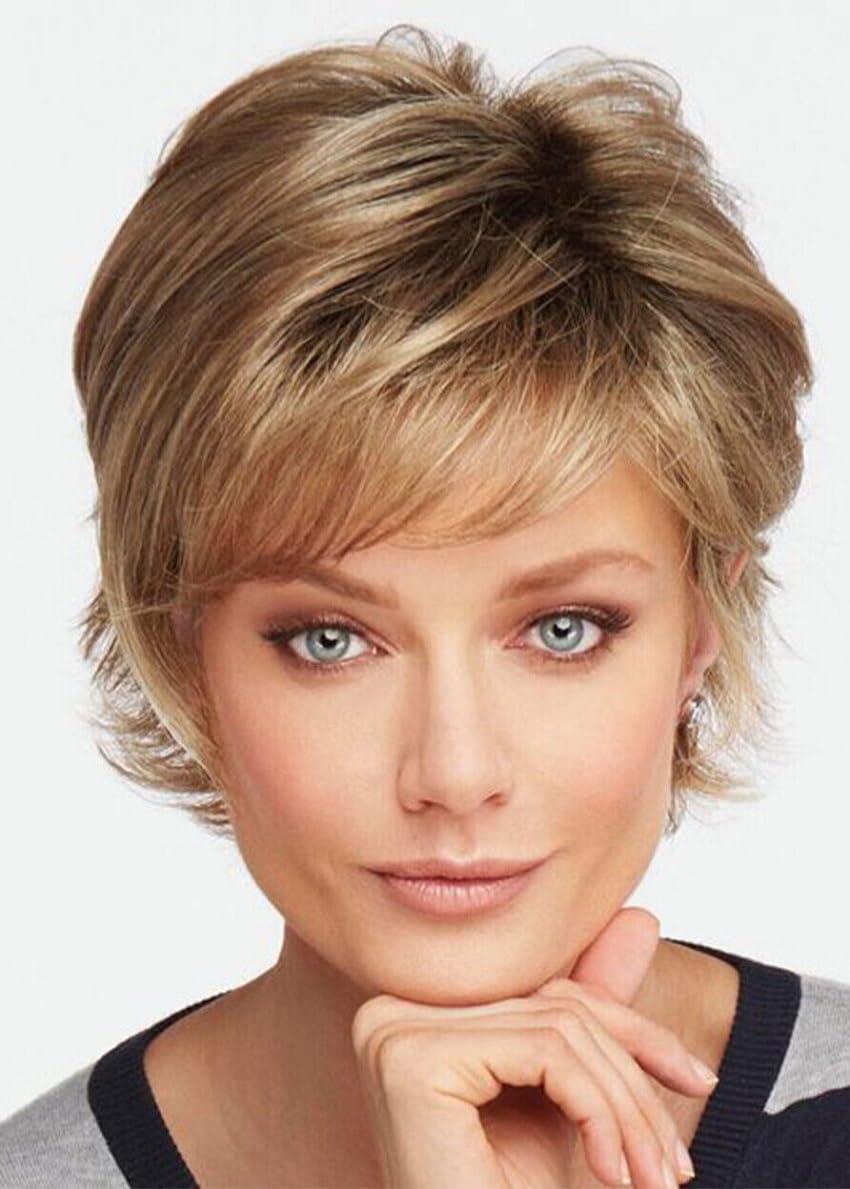 Short Layered Hairstyles Women\'s Choppy Wavy Human Hair Capless Wigs 10Inch