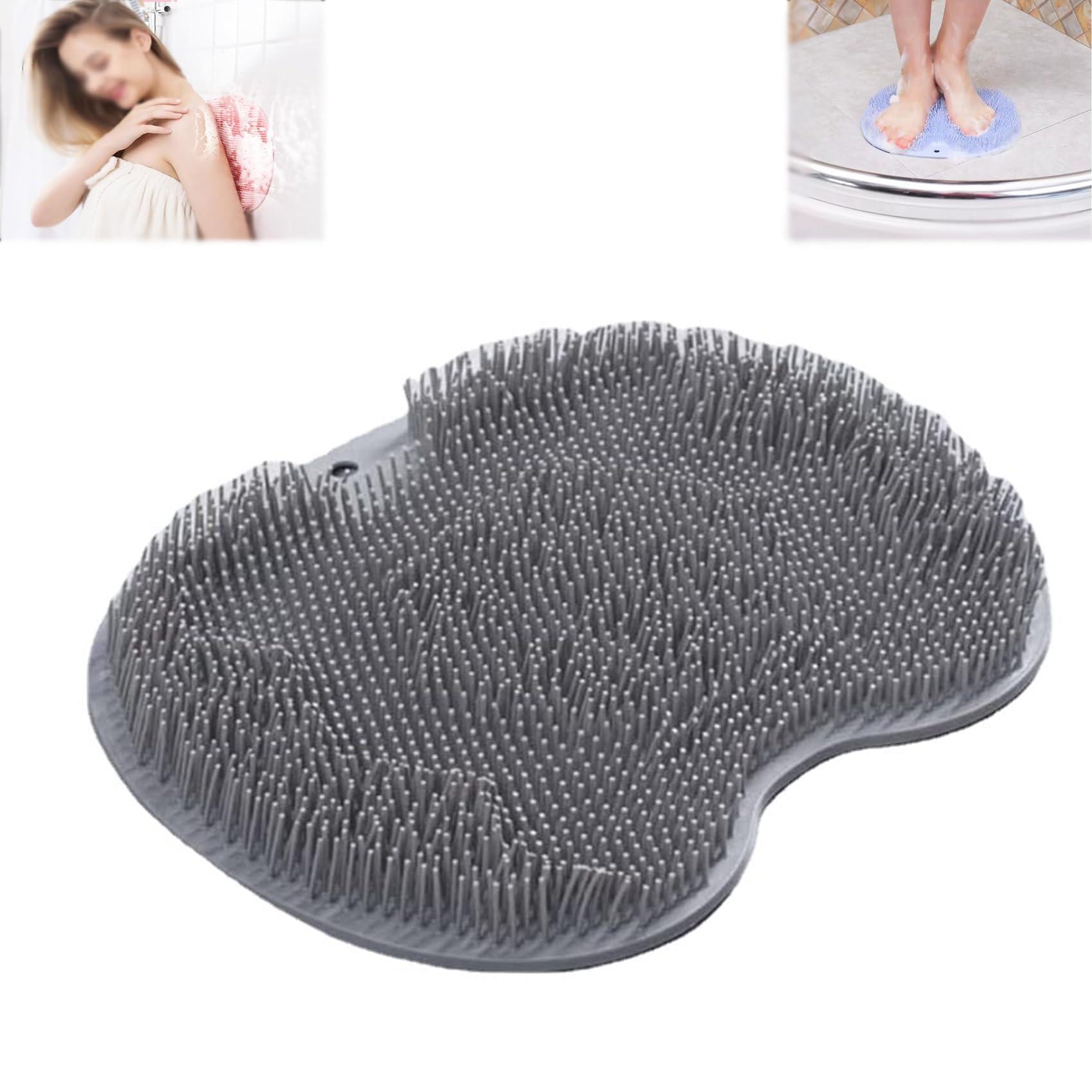 Shower Foot & Back Scrubber, Massage Pad, Silicone Hands Free Back Scrubber for Shower, Wall-Mounted Back Scrubber, Foot Scrubber for Shower Floor, Cushion Brush with Suction Cups (Gray)