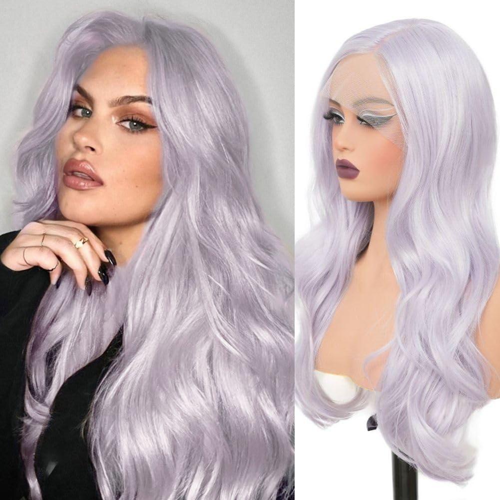 Siudus Purple Lace Front Wigs for Women Natural Long Curly Wavy Synthetic Heat Resistant Fibre Hiar Wig for Halloween Daily Use