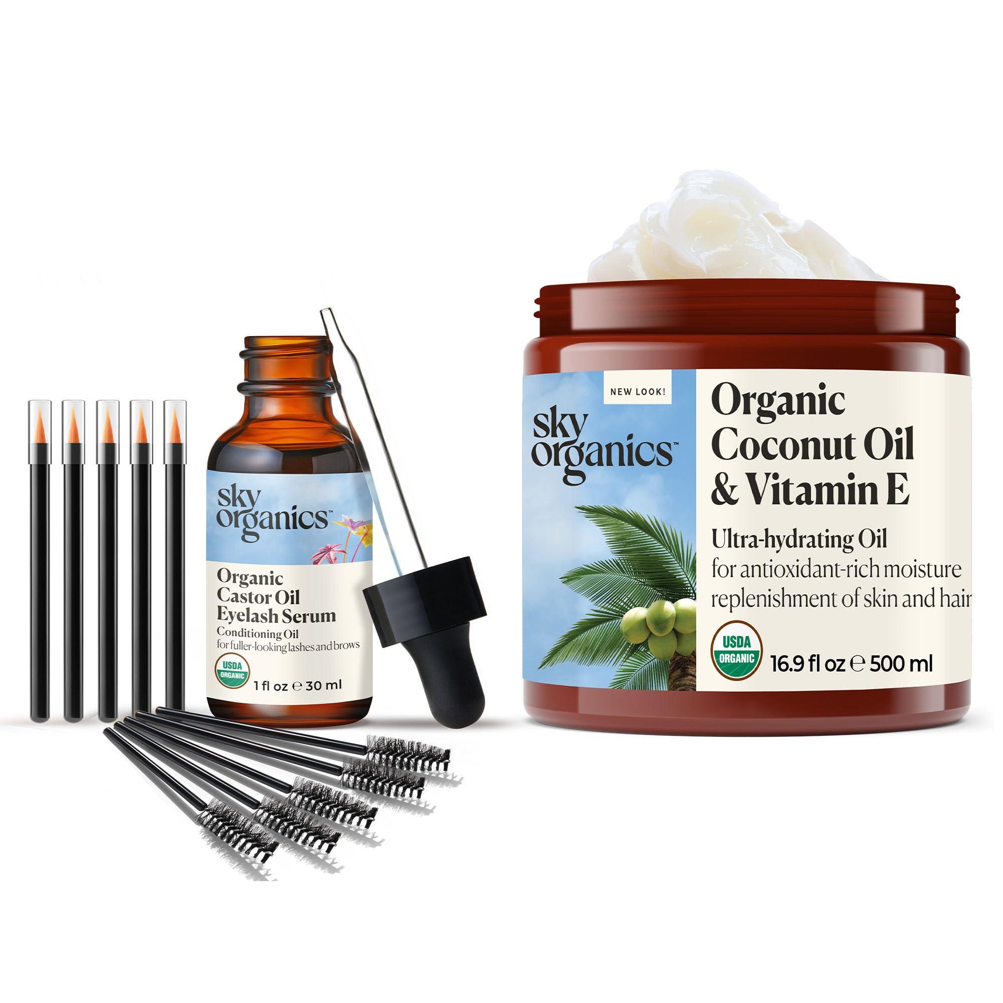 - Convenient and Travel-Friendly Packaging: The Sky Organics bundle is designed for ease of use and portability. The compact packaging of both the coconut oil and vitamin E blend and the castor oil serum makes them perfect for daily use and travel. Maintain your beauty routine effortlessly, whether at home or on the go, with these essential products for radiant skin and enhanced lashes and brows.