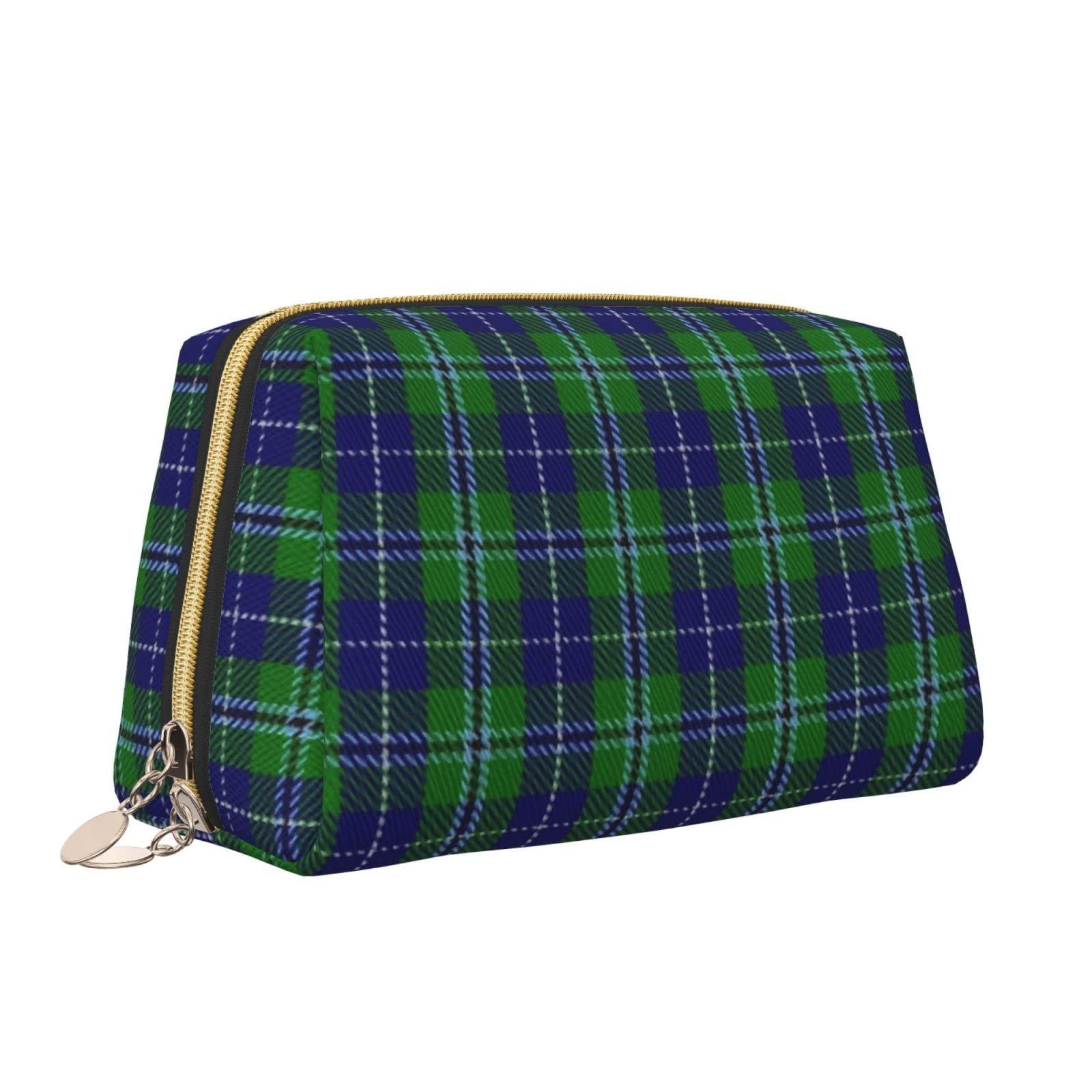 Small Makeup Bag for Purse, Clan Douglas Tartan Plaid PU Leather Travel Cosmetic Pouch, Portable Toiletry Bag for Women Girls Daily Storage Organizer