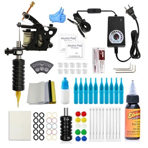 Small tattoo machine flower arm cutting and fogging coil machine kit Including power supply black tattoo ink Complete professional tattoo equipment kit