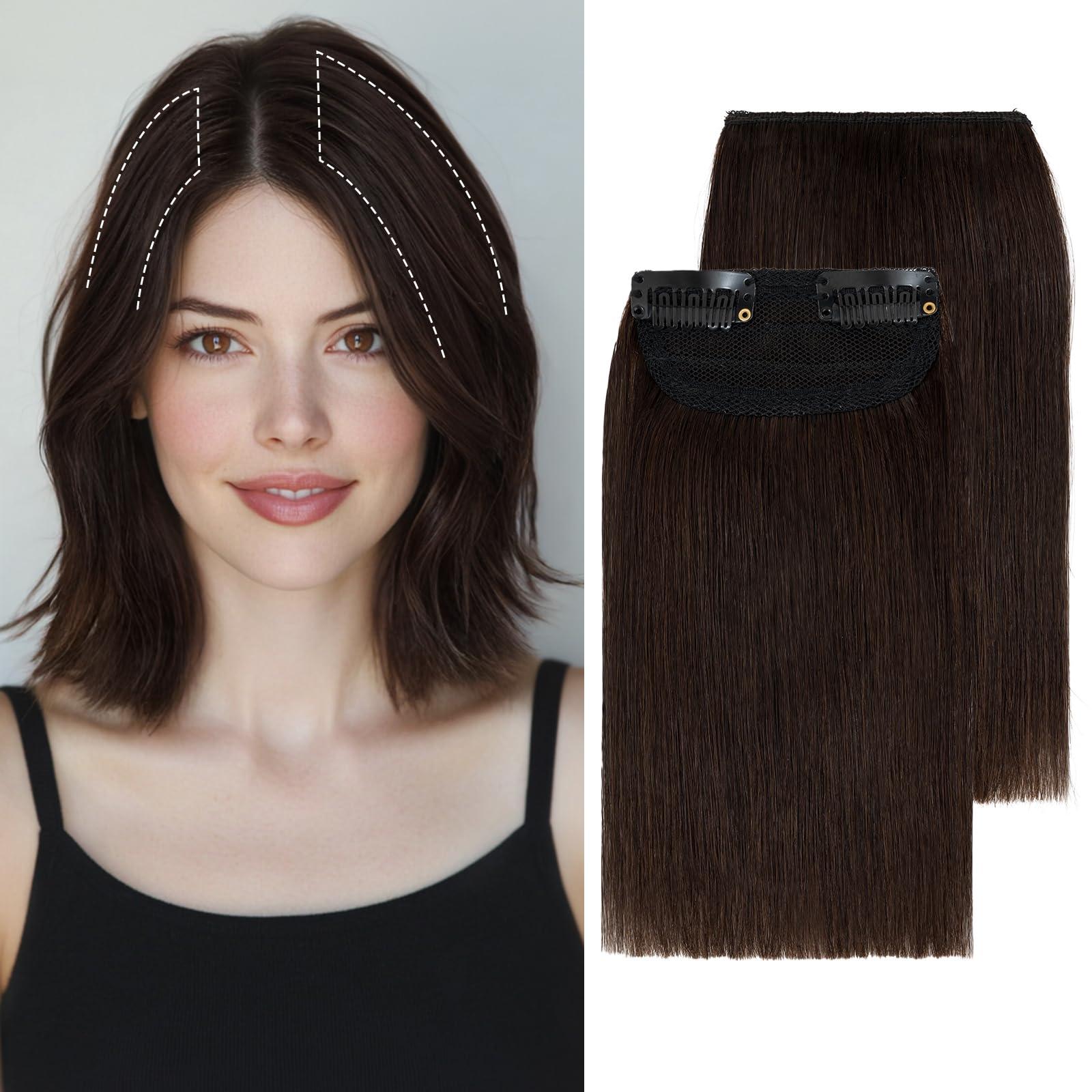 S-noilite S-noilite 2PCS Clip in Short Hair Extensions Human Hair Clip in Hairpieces 100% Remy Hair For Women with Short Hair Adding Hair Volume 20g 6Inch-Dark Brown