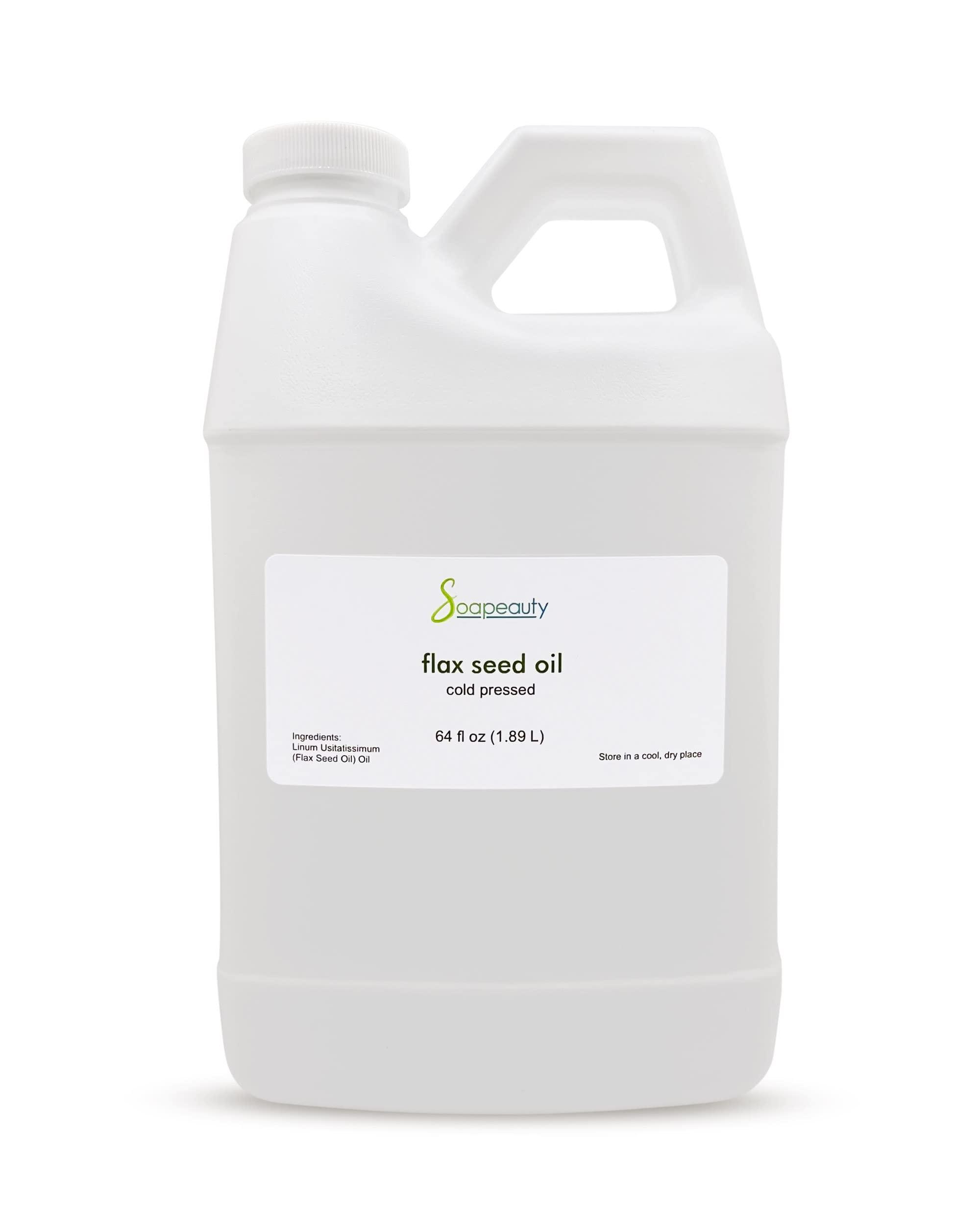 Soapeauty Flax Seed Oil Unrefined Cold Pressed 100% Pure and Natural | for Skin, Hair and DIY Recipes | Source of Omega-3 & ALA | 64 fl oz