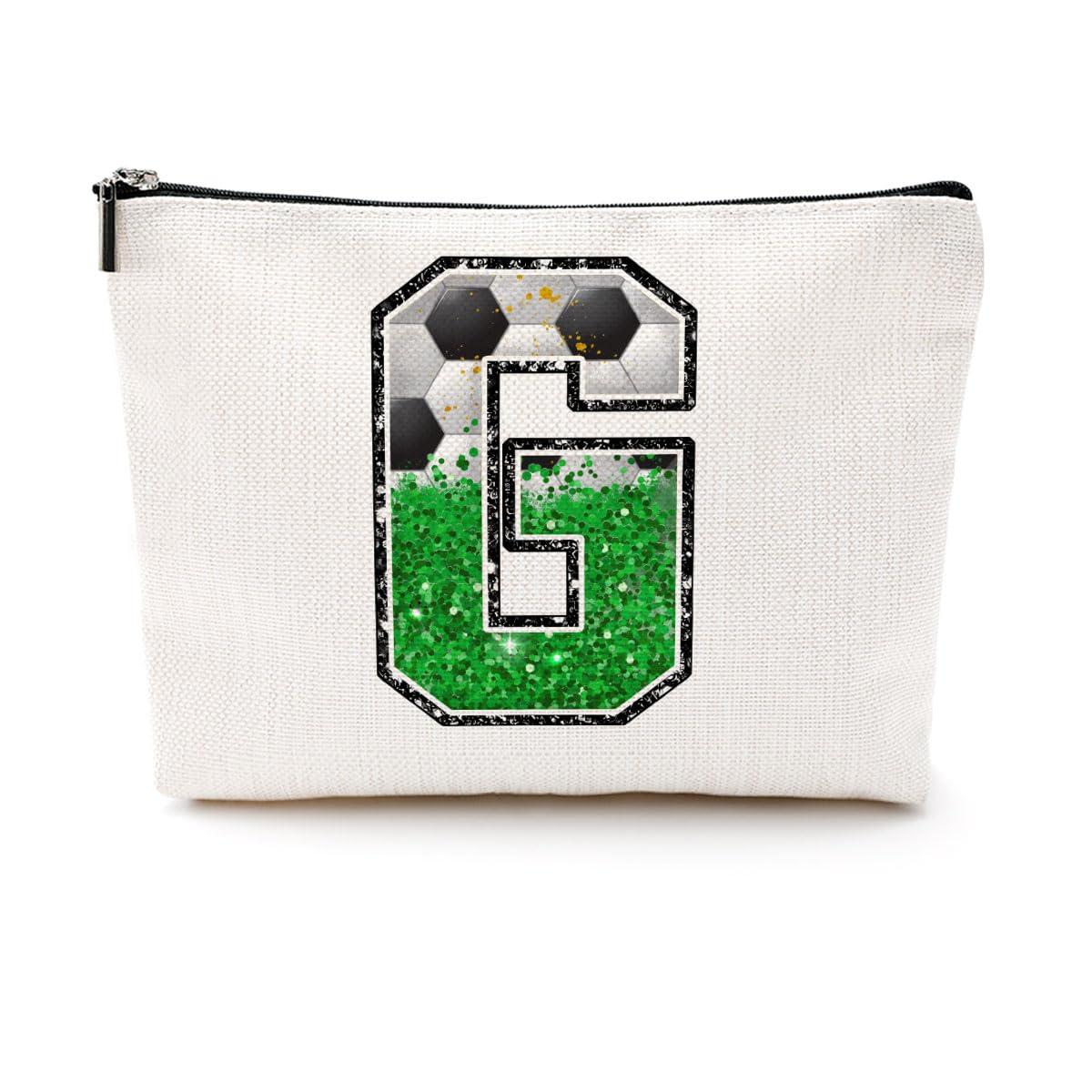 Soccer Gifts Initial Makeup Bag Monogrammed Cosmetic Bag Letter G Zipper Pouch Soccer Accessories for Girls Women Soccer Player Coach Friend Soccer Stuff Graduation Birthday Gifts